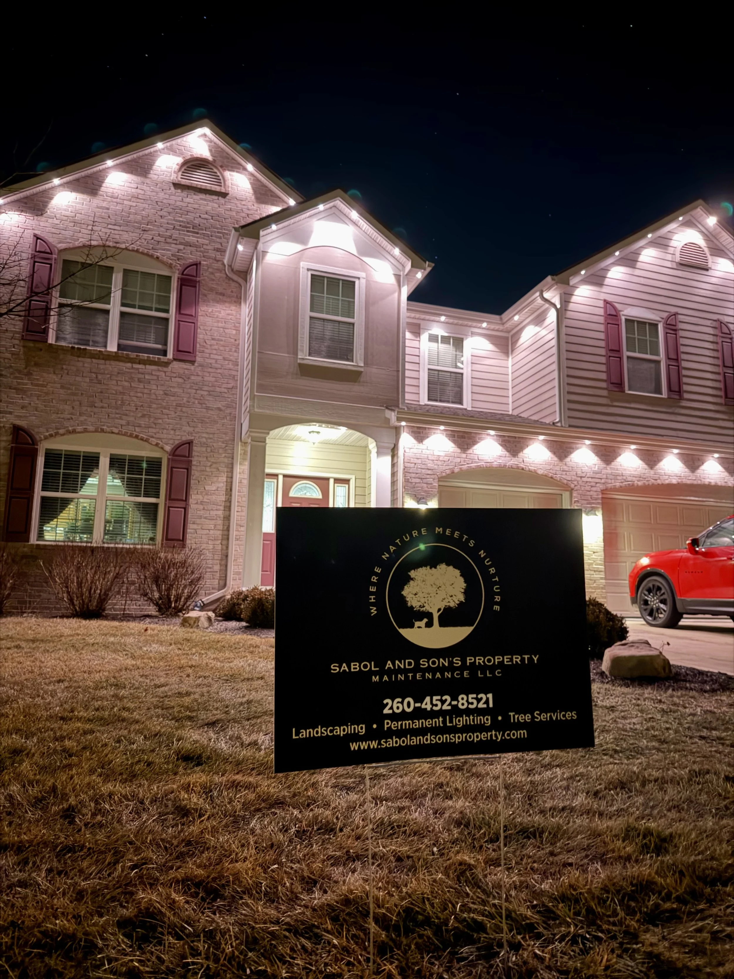 Brighten your home or business with custom outdoor lighting from Sabol and Sons. We provide holiday lighting setups and permanent landscape lighting across Fort Wayne, New Haven, and Northeast Indiana. From simple roofline displays to commercial storefronts, we deliver safe, efficient, and beautifully installed lighting solutions.